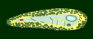 Rechts und links verteidigen Bunker das Green. Mit einem kleinen Holz oder langem Eisen kann man das Green gut erreichen.